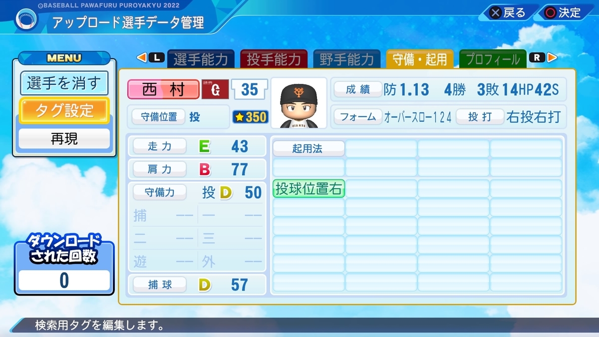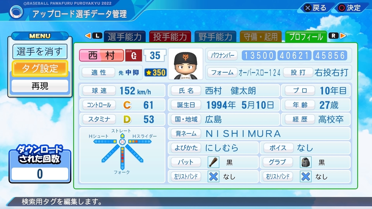 巨人軍の選手は当ブログ初となります。アンチではなく、巨人ファンの作成者が多い影響ですかね。西村投手はかなりの好成績で優勝に貢献しているのですが、何故か地味なイメージが残る感じもします。