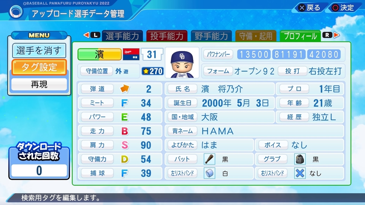武器は遠投125メートルの超強肩で、投げては149キロを記録。50m5.9の俊足もセールスポイント。今季はNOL・福井のGMだった西村徳文から指導を受け、走塁技術も向上。58試合で37盗塁を記録し、NOLの初代盗塁王に輝いた。遊撃手に挑戦したがむしゃらさも光る。