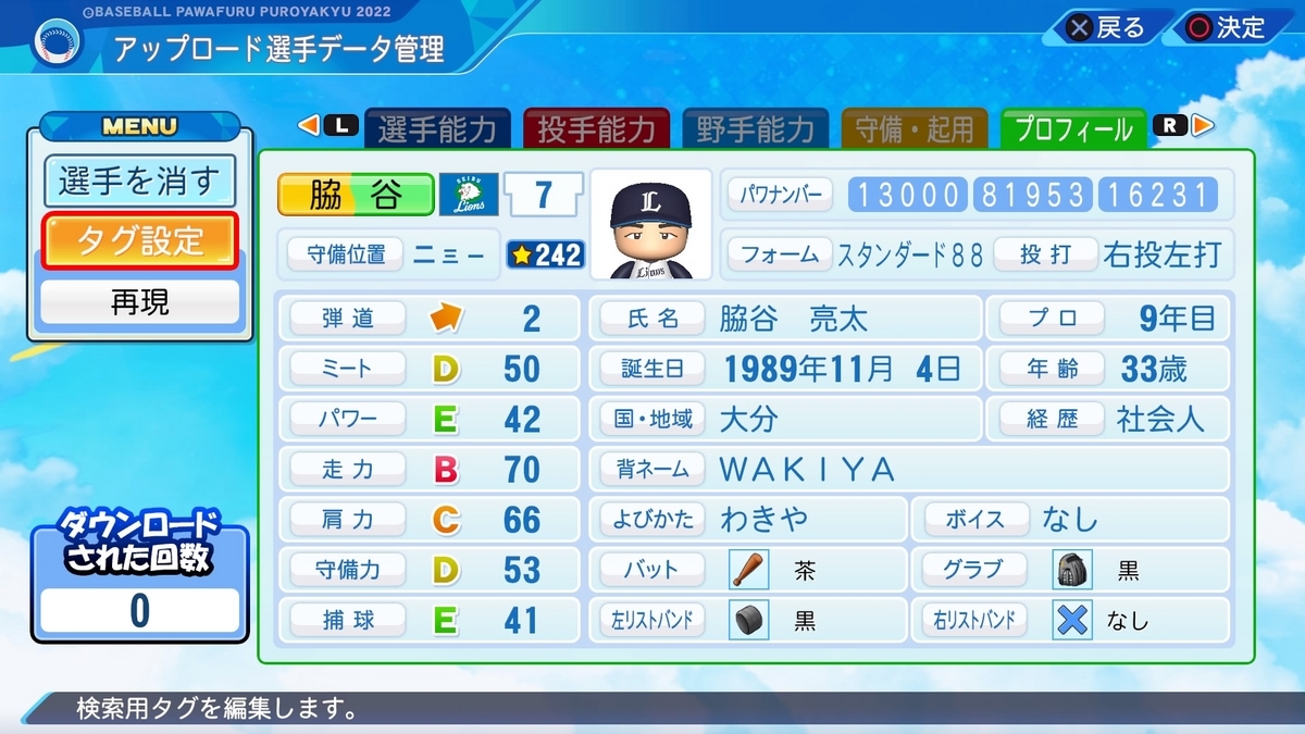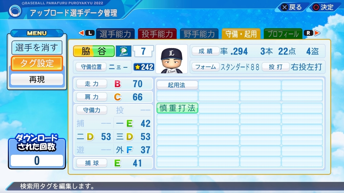 カット打ちを付けても良いレベルのP/PAを残していますが、カットが上手いというような印象や情報がなかったので採用しませんでした。