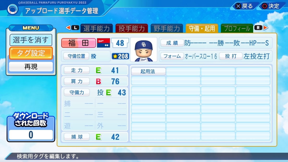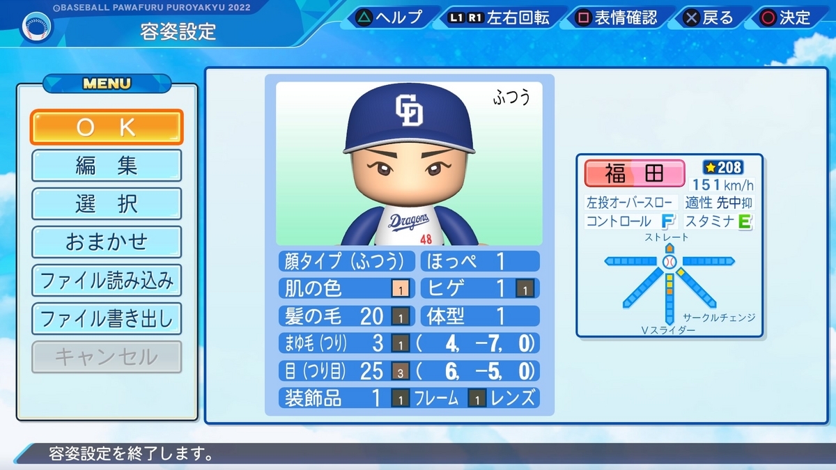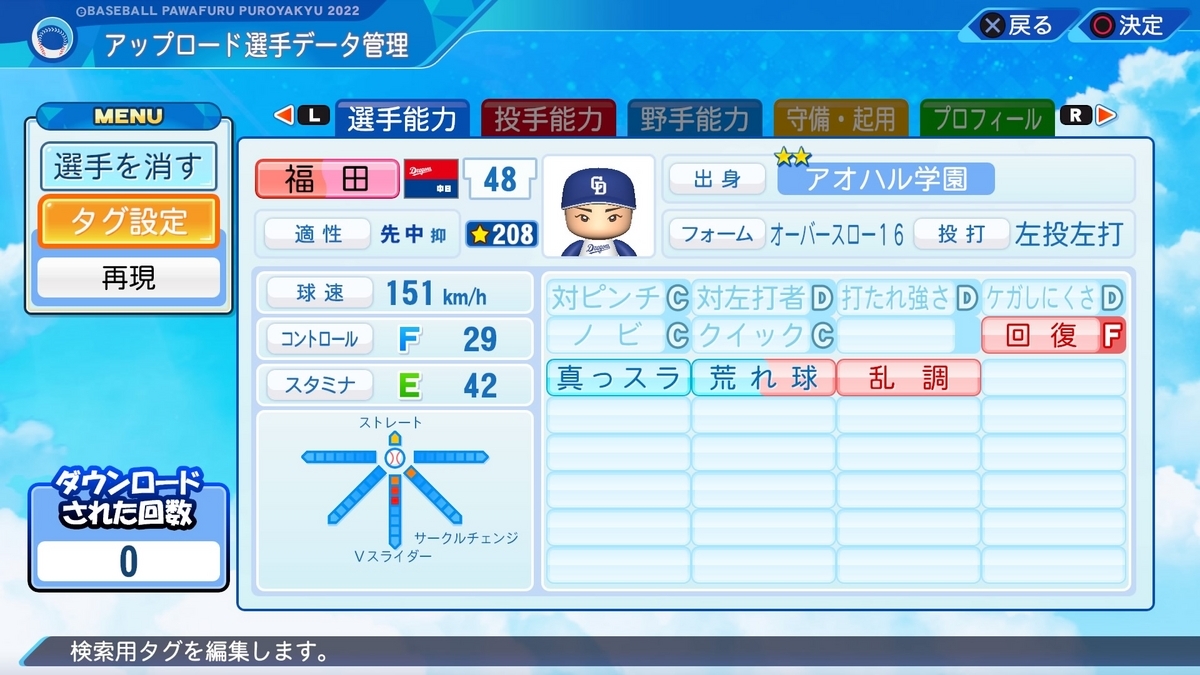 ◯速めのクイック。パワプロ劇空間様を参考にさせていただきました